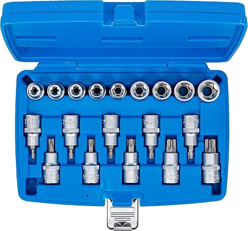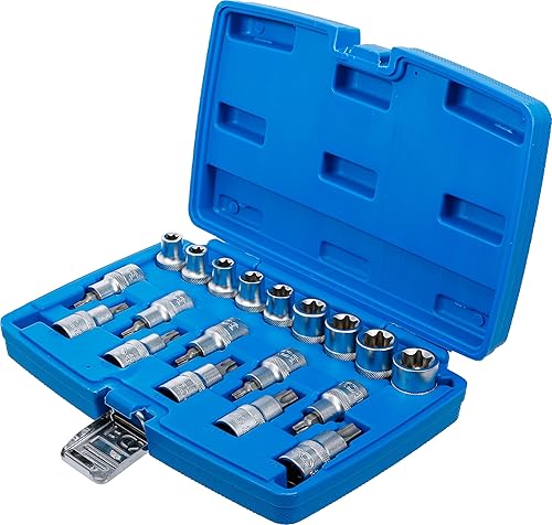 Juego de puntas y llaves de vaso | entrada 12,5 mm (1/2') | E-Torx/perfil en T (para Torx) | 19 piezas