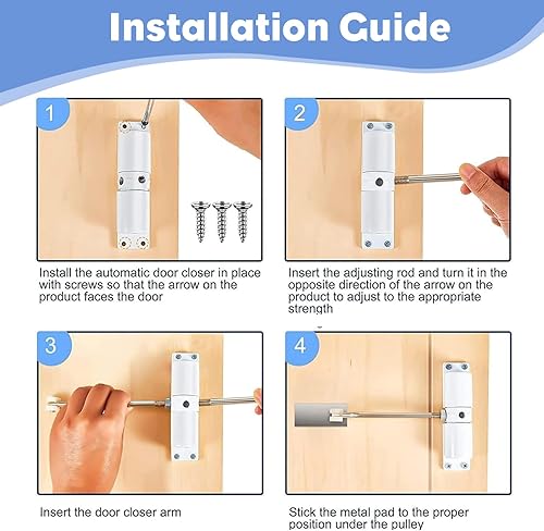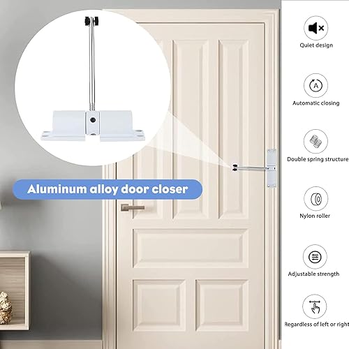 Chiudiporta PCKOBEVER, chiudiporta automatico a molla di sicurezza in lega di zinco, chiudiporta per porta interna, chiudiporta regolabile con asta e viti bianco