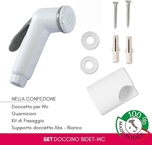 8117 | Doccetta per Bidet Universale, Doccino per Bidet Shut off in Abs, Doccino per Wc a Mano Bianco, Doccetta Igienica per Idroscopino
