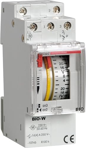 VEMER VE088100 BIO-W - Interruttore Orario Elettromeccanico a Cavalieri, Programmazione Settimanale, 2 Moduli DIN, Grigio