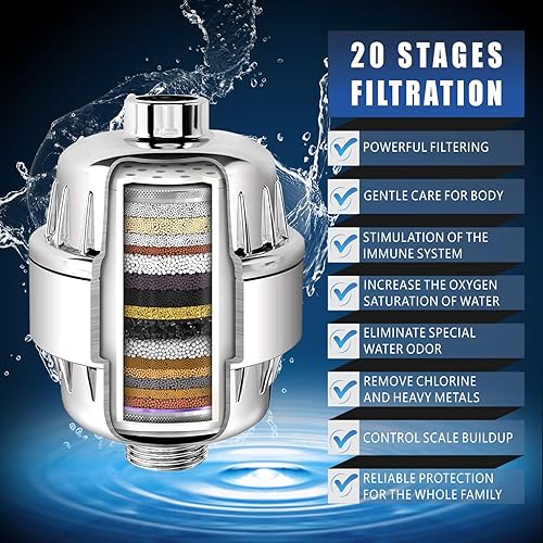Voolan 4 Confezioni di Cartucce di Ricambio per Filtro Doccia, Filtro per Doccia con Acqua dura a 20 Stadi per Rimuovere Cloro e Metalli Pesanti, Addolcimento Dell'acqua