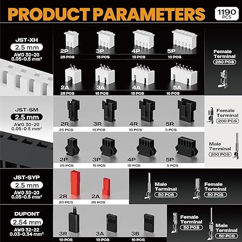 SOMELINE® Kit di connettori per crimpatura, 27 tipi, crimpatrice 32-20 AWG, JST-XH/SM/SYP 2,5 mm e kit connettore Du Pont 2,54 mm, pinza crimpatrice per JST, Du pont, KF2510, Molex, AMP EI Series