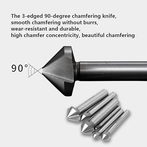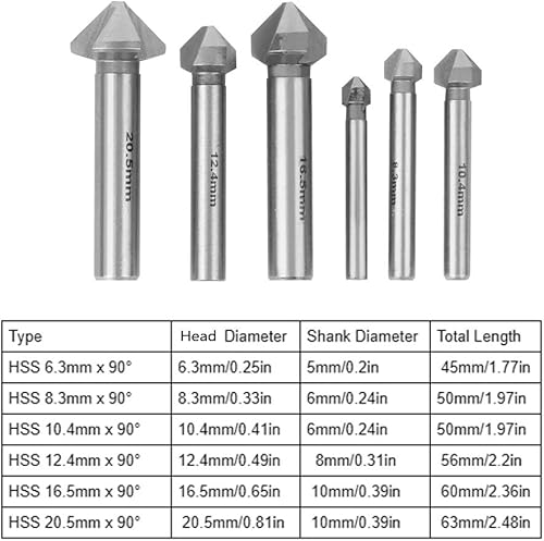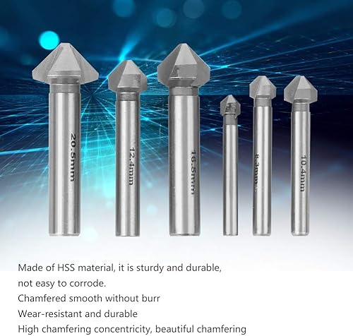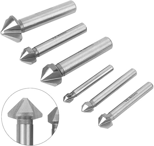6 Pezzi Fresa per Smusso, Fresa per Smusso in Metallo Duro Svasatore HSS con Codolo Tondo 3 Punte Trapano Svasatore in Acciaio Ad Alta Velocità con Taglio a 90 Gradi