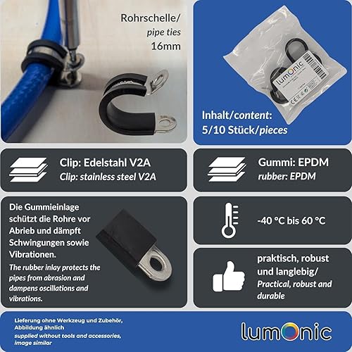 5x fascette per tubi da 16mm con inserto in gomma in acciaio inox V2A I fascette per cavi per avvitare I fascetta per tubi 16mm, fascette per