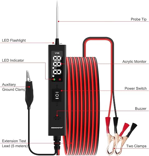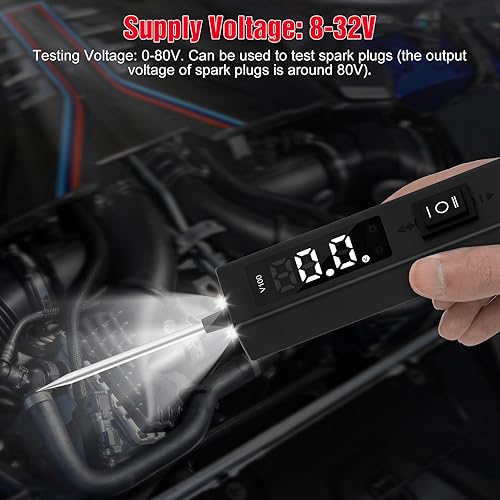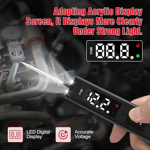 Lampada di prova tester per circuiti auto, 12 V, 24 V, 0 – 80 V DC, tester di tensione per auto con sonda di circuito, display a LED e allarme per testare batterie automobilistiche/passaggio/terra