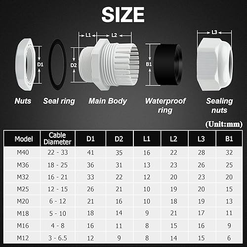 5 passacavo M32, passacavo impermeabile, IP68, passacavo regolabile, per esterni, giardino, scatola di derivazione
