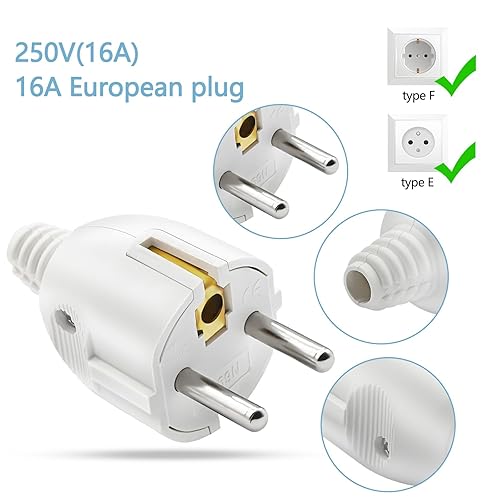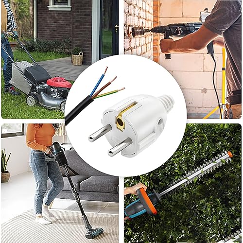Spina Maschio 3 pezzi Spina Schuko da Esterno con Protezione Antipiega,250 V 10/16A,Spina con Contatto di Messa a Terra, Spina di Terraspina di Terra, Spina Cablata Laterale Bianco