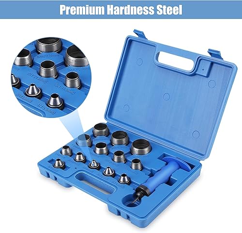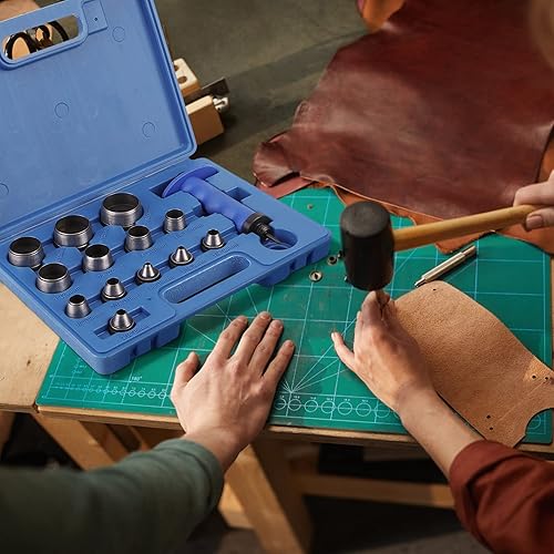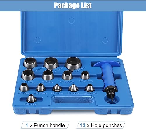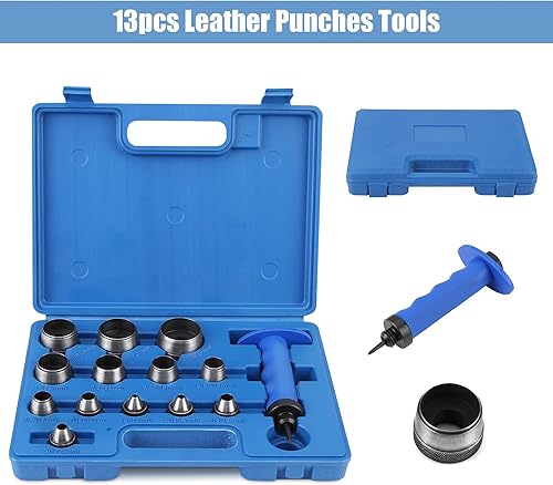 Set di punzonatura cava 13 pezzi con impugnatura Strumento di perforazione per cintura per lavori pesanti in pelle Perforatore in pelle Punzone per la lavorazione della pelle Punzone per cintura