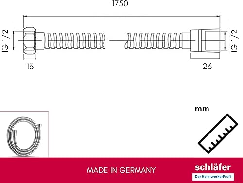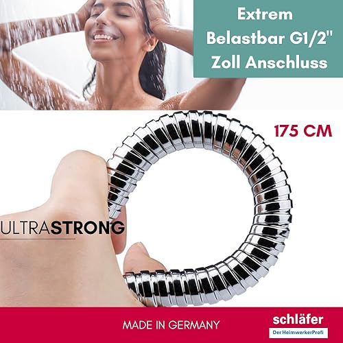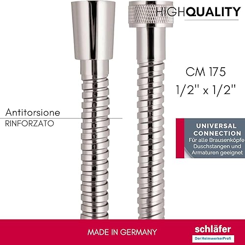 808590 | Flessibile doccia Flessibile Doccia Tubo Doccia Universale in Ottone Connettori Universali G 1/2' ad Alta Pressione, Tubo doccia flessibile 1.75 metri, Cromo