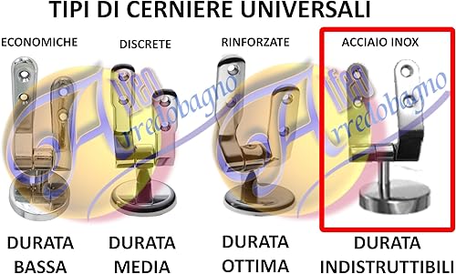Cerniere coprivaso sedile wc copriwater di ricambio UNIVERSALI in ACCIAIO INOX (COPPIA)