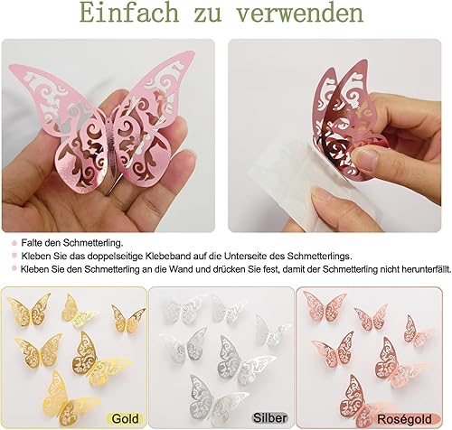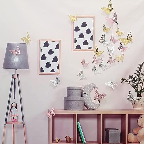 24 pezzi 3D Decorazione farfalla, adesivi farfalla, tatuaggi murali decorativi farfalla adesivi murali rimovibili Decorazione murale Home Decor