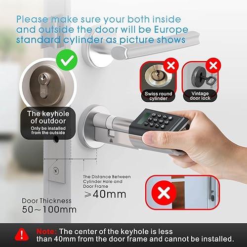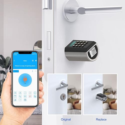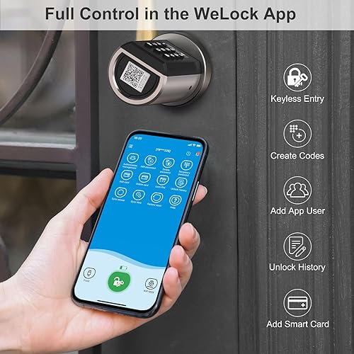 WELOCK Smart Door Lock, serratura senza chiave, Smart Lock per porta anteriore, impermeabile con app e smart card, lunghezza regolabile per porta da 50 a 100 mm