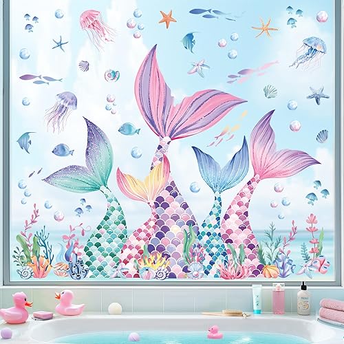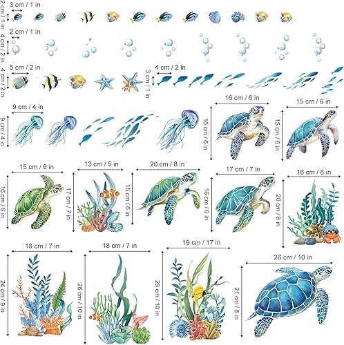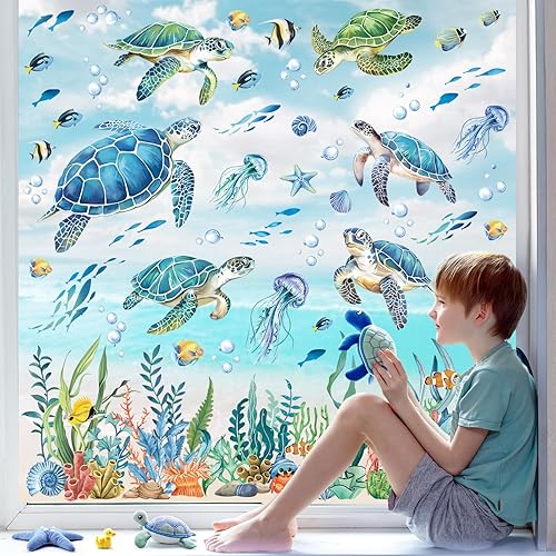 Adesivi per Finestra Sotto il Mare Tartaruga Decalcomanie per Finestre Non Adesiva Vetro Pellicola Oceaniche Pesci Marina Alghe Adesivi Anti-Collisione Finestra Vetro Porte Bagno