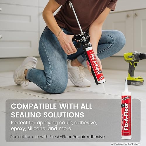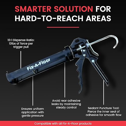 Fix-A-Floor Pistola per presellatura con rapporto di spinta 10:1, ideale per l'uso con adesivo Fix-A-Floor (non incluso) per riparazioni di pavimenti sciolti, cavi e scricchiolanti