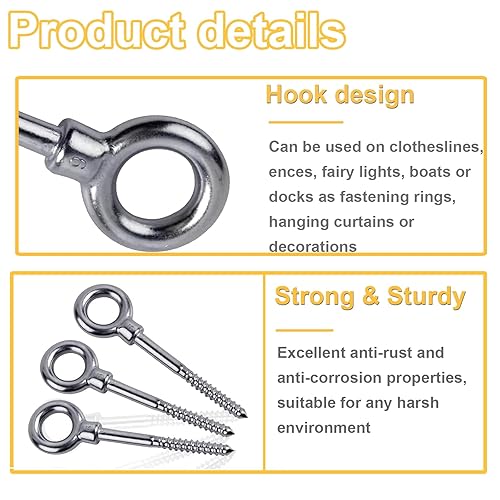 6 Pezzi Bullone a Occhiello M6, Viti a Occhiello, Dado a Occhiello con Dado ad Anello, Occhielli a Vite per Legno, Utilizzato per Appendere Oggetti Vari, Adatto per uso Interno ed Esterno