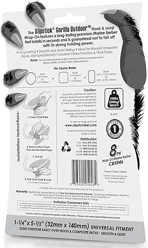 Slipstick GorillaOutdoor CB5046 - Protezioni per pavimenti con base a slitta per mobili con gambe e basi tubolari (confezione da 8), cuscinetti avvolgenti per mobili per esterni o interni, nero/grigio