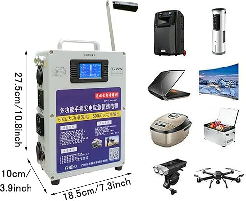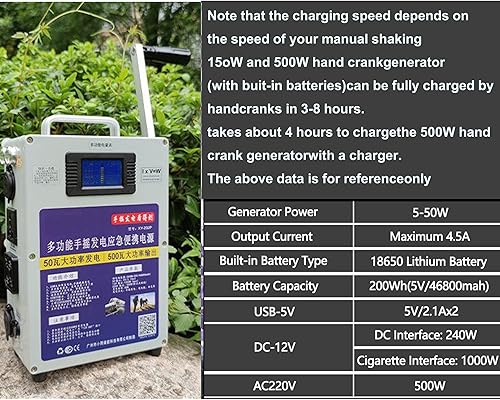 Generatore Manuale Portatile - Generatore di Spazzole DC Interamente in Acciaio con AC220V/500W E Corrente di Uscita Massima di 4,5A for L'energia Mobile di Emergenza