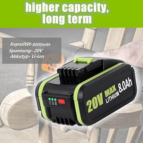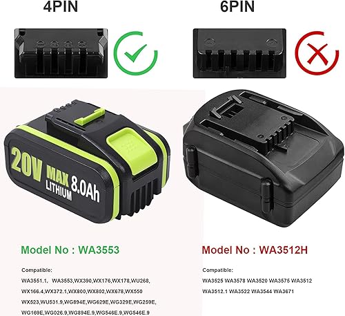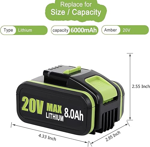 2 X 20V8.0Ah per utensili elettrici a batteria Worx WA3551 WA3572 WA3553 WX390 WX176 WX178 WU268 WA3551 WX166.4 WX372.1 WX800 WG259E WA3760 WA3888888 1