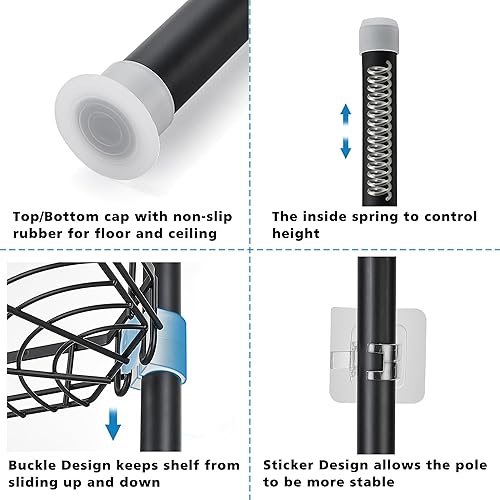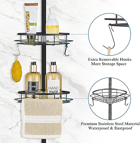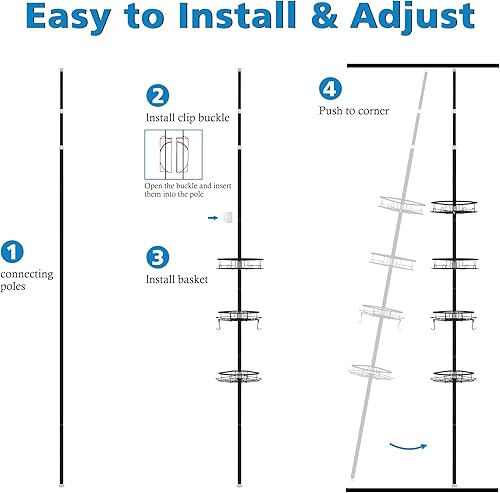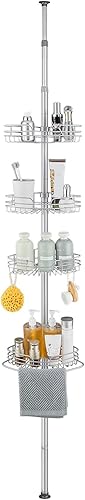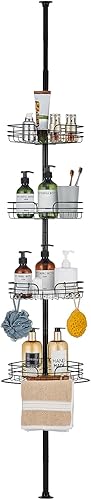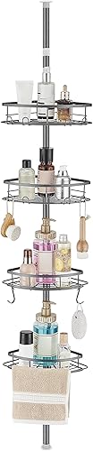 Telescopica Mensola Doccia Senza Foratura Mensole Bagno Angolare Metallo Portaoggetti Doccia con 4 Ripiani per Vasca da Bagno 85-325CM Grigio