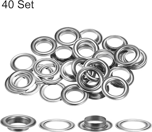40 Set di Occhielli con Rondelle 17mm Kit Occhielli in Metallo Ramato per Teloni per Tende in Tessuto, Cintura in Pelle, Borsa per Scarpe, Fai da Te, Tono Argento