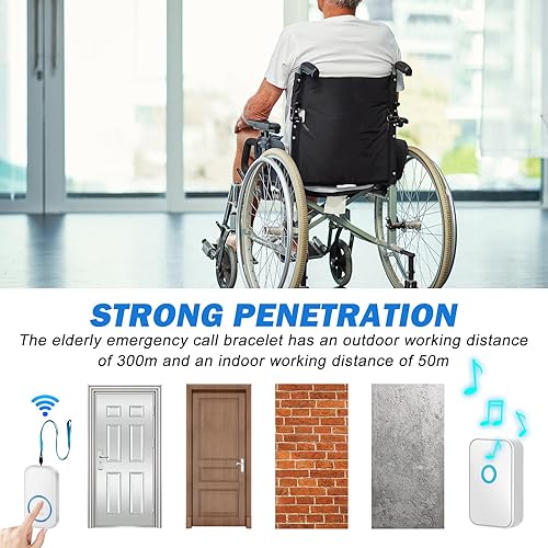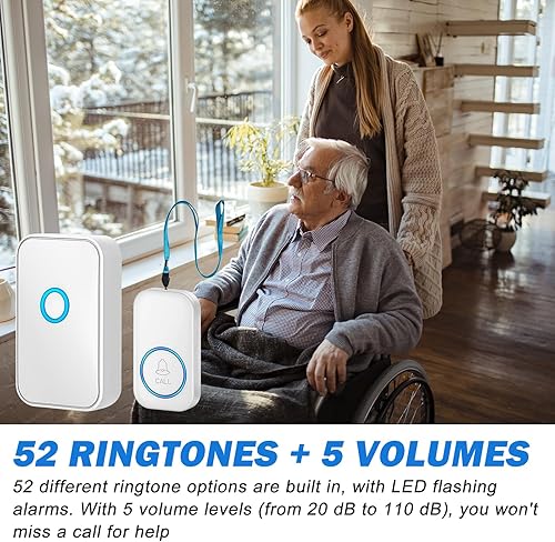 Pulsante di emergenza per anziani: chiamata di emergenza per anziani, senza fili, allarme mobile, pulsante di chiamata di emergenza, per anziani con suonerie, luce vibrante per anziani che