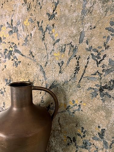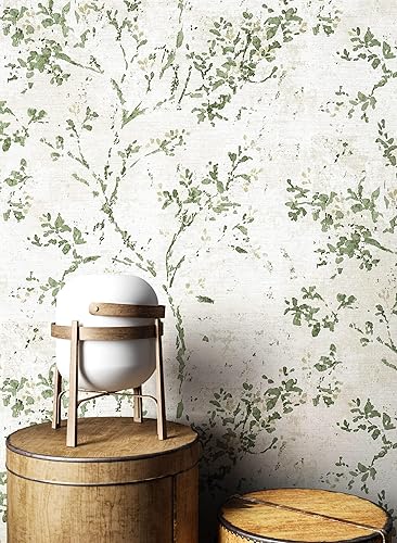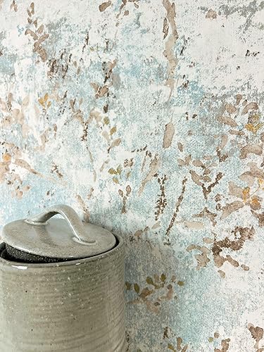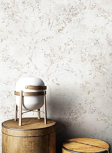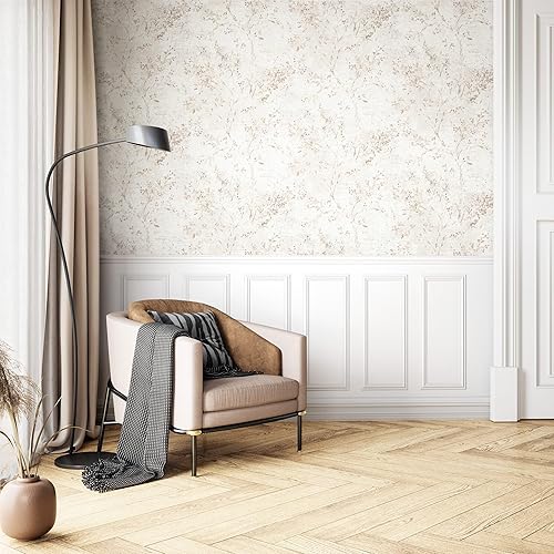 carta da parati Azzurre Foglia Tessuto non Tessuto - Floreale Grigio Beige Rami Tendine della foglia Ottica 3D