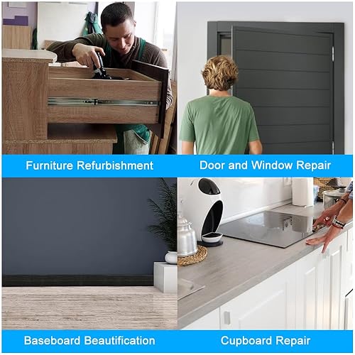YunBey Nastro adesivo effetto legno, per riparazione, colore grigio scuro, in legno, per mobili, effetto legno, per tavoli, porte, bordature e pavimenti (5,7 cm x 4,57 m)