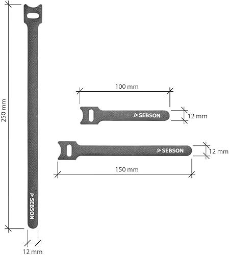 Fascetta per Cavi riutilizzabili Nera, Set di 50 - Larghezza 12mm; Lunghezza 25cm/ 15cm/ 10cm - Fascette a Strappo Regolabili, Tessuto