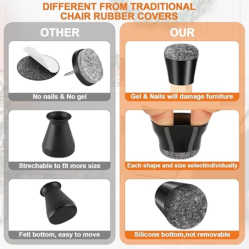 Coprigambe per Sedie, 40 Pezzi Gommini in Silicone, Feltrini Rotondi per Mobili, Sgabelli, Tavoli, Divani - Protezione da Rumore e Graffi (Misura: 14-20 mm)
