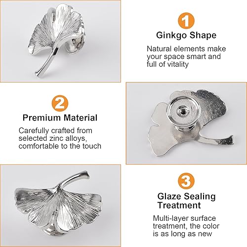 Ginkgo, 6 pomelli per armadio in metallo solido maniglie per cassetti creative decorazione per armadietto, cassetto, scaffalature, mobili, accessori classici per armadietti, colore oro