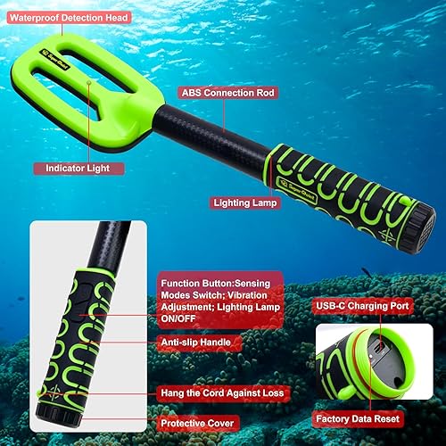 Metal Detector Subacqueo, Impermeabile IP68, Metal Detector Professionale Portatile con Allarme Sonoro e Vibrazione, Luce LED, Ricerca di Tesori in Immersione, Spiaggia, Giardino