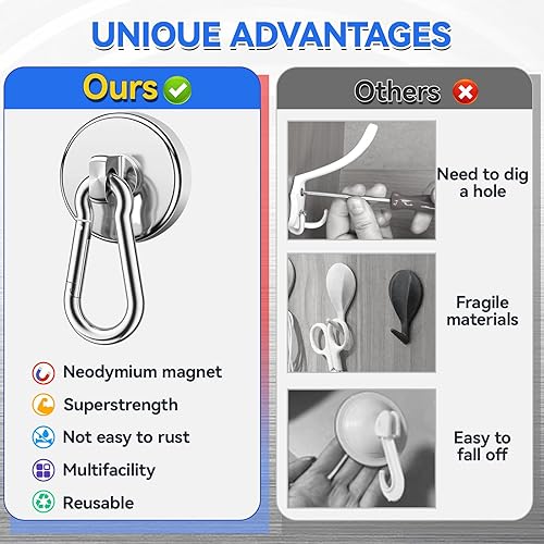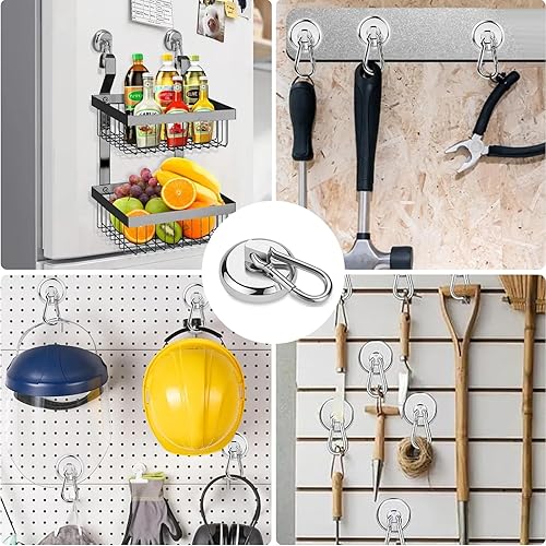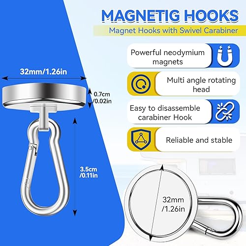 27KG Calamite Potenti Ganci, 32mm Ganci Magnetici, Gancio Magnetico Extra Stark Gancio Magnetico Ruotabili a 360° per Crociera, Frigo e Garage
