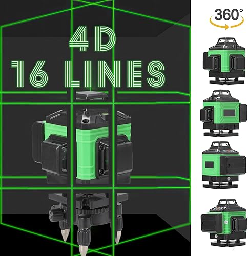 Livello laser a 16 linee, livello laser autolivellante 360 ° x 4 gradi verdi, macchina di livellamento laser, 4D 3° livellamento, IP54 Anti-Polvere Tank High Accuracy Rotante Laser Cantier con 2