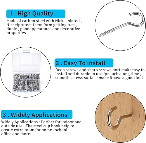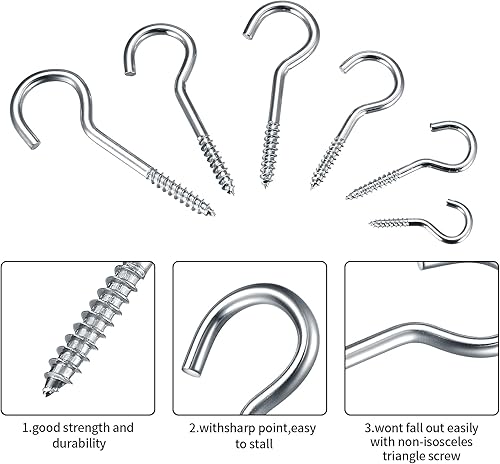115 Pezzi Ganci a Vite, Ganci a Soffitto, Ganci Gancetti Avvitabili a Vite in Metallo per Legno per Appendere - 5 Dimensioni, Argento