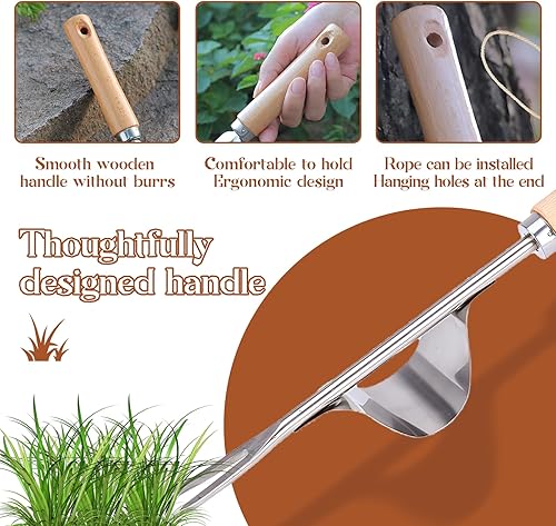 2 Pezzi Estrattore per Giardino, Strigliatori con Manico in Legno Naturale, Garden estrattore Erbacce sarchiatrice Manuale per Scavare, estirpare, smuovere e allentare Il Terreno