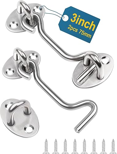 Gancio e occhiello da 7,6 cm, 1 pezzo da 75 mm, gancio per cancello in acciaio inox, gancio per serratura della porta, chiusura a gancio per cancelli in legno, gancio per finestra