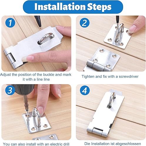 Lucchetto Haspe da 5 pollici, in acciaio inox 304, serratura di sicurezza, con viti, lucchetto per lucchetto, armadi, cancelli (L×W=137×39mm)