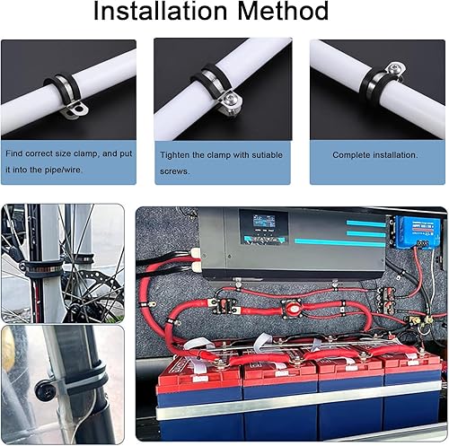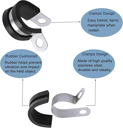 50PCS Morsetto per cavi in acciaio inossidabile con morsetto per tubi in gomma Assortimento con 5 dimensioni 1/4 '' 5/16 '' 3/8 '' 1/2 '' 5/8 '' per fascette per cavi in metallo