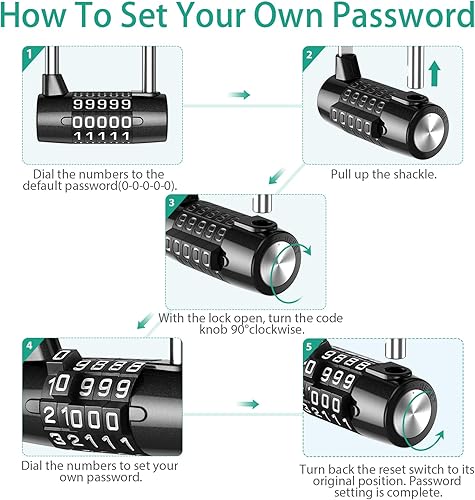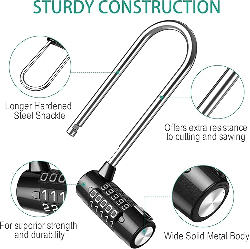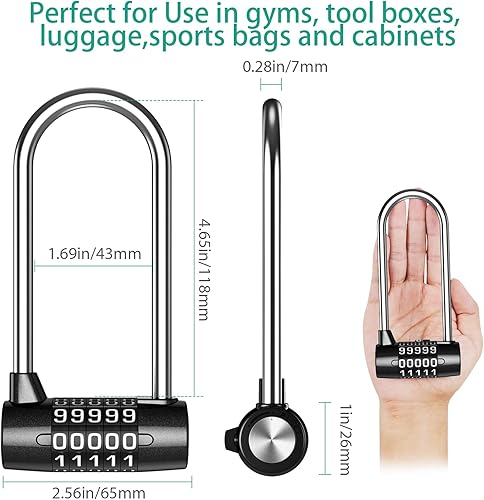 Lucchetto a Combinazione Lunga a 5 Cifre, Lucchetti per Armadietto con Azzerabile, Lungo Serratura a Combinazione con Lega di Zinco e Acciaio, Perfetto per Ginnastica, Recinzione, Cancello