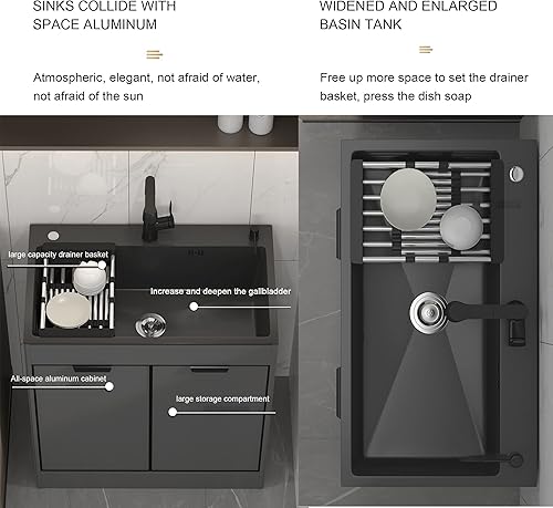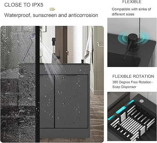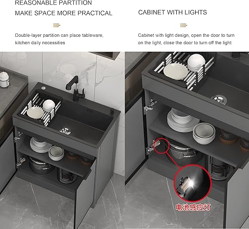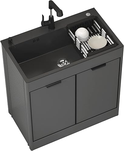 Lavandino da Esterno Nero Lavello Cucina 1 Vasca Mobile da Esterno Lavandino multiuso nero da appoggio con mobiletto Lavello da cucina portatile a vasca singola per ristorante commerciale ( Color : Pu