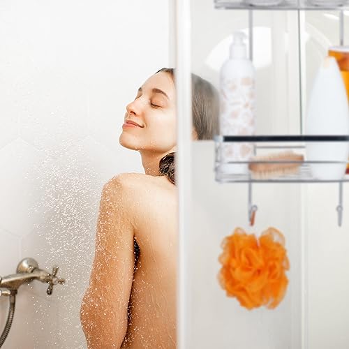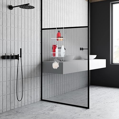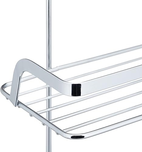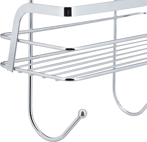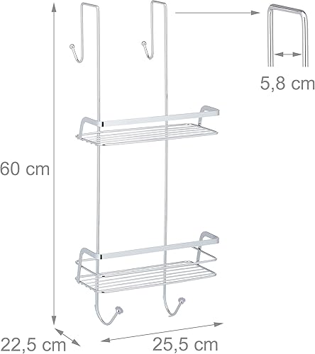 Relaxdays Mensola Portaoggetti da Doccia, Ferro Cromato, HLP 60x25,5x22,5 cm, Appendere, 4 Ganci e 2 Ripiani, Argentato
