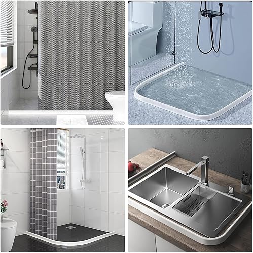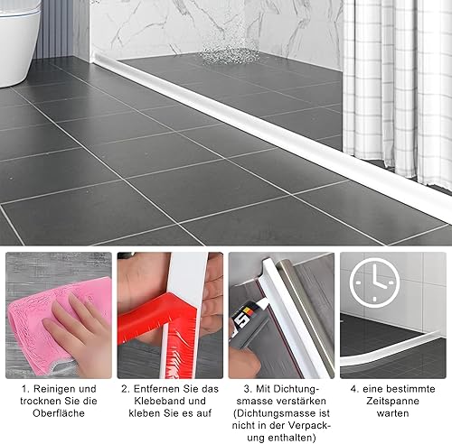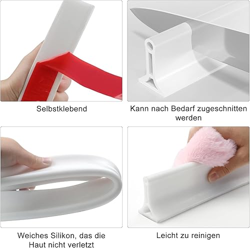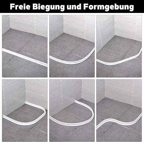 Striscia protettiva per doccia autoadesiva, 2 m, in silicone, per bagno e cucina, WC, barriera all'acqua, può essere tagliata e piegata (bianco, 200 cm x 4 cm x 3 cm)