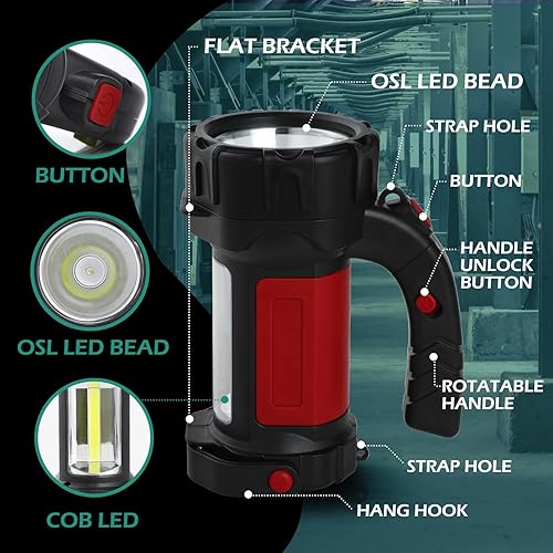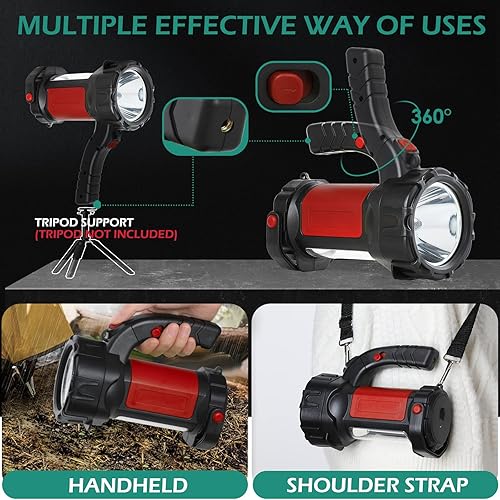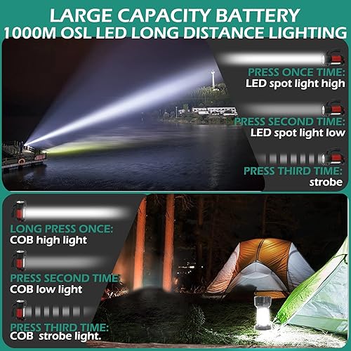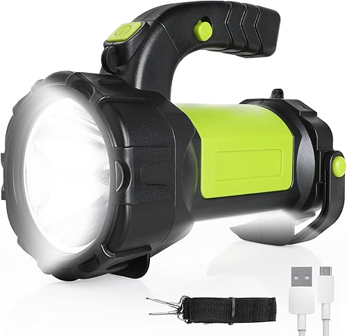 Torcia Potente Professionale, Lanterna da Campeggio Ricaricabile con Luce Laterale 6000 Lumen 6 Modalità Impermeabile LED Torcia Portatile Flashlight per Campeggio Trekking Caccia Verde