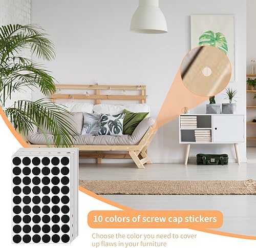 540 Pezzi Tappi Coprivite Adesivi 10 Fogli Tappo del Foro Vite Copre Adesivi 10 Stile 21 mm Autoadesivo Tappi di Copertura a Vite Stick Utilizzato per coprire i fori delle viti nei mobili
