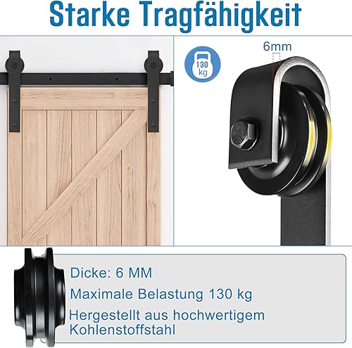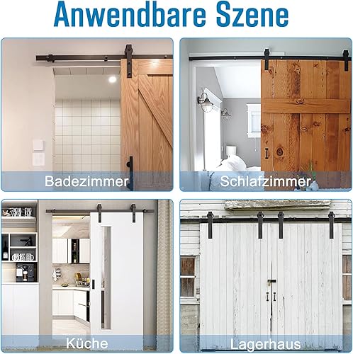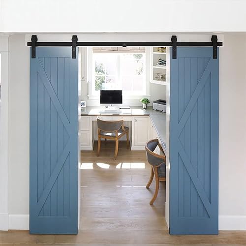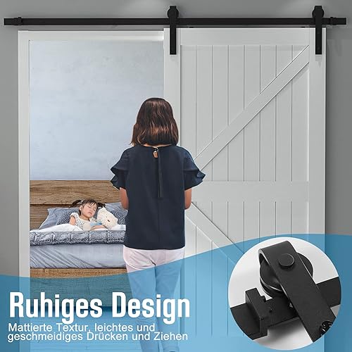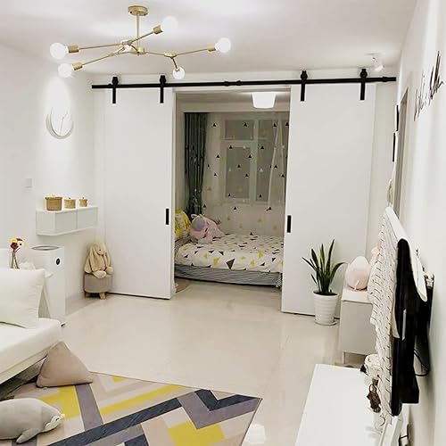 Kit di binari per porta scorrevole da 366 cm, in acciaio al carbonio per porta scorrevole per armadio, kit di montaggio per asta sospesa, nero