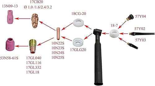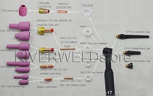 RIVERWELD TIG Stubby Gas Lens 17GL040 Ø1.0mm 10N22S Kit pinza TIG adatto DB SR WP 17 18 26 Torcia per saldatura TIG 10 pezzi