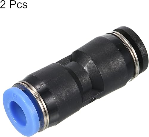 PATIKIL 1/4' a 6mm Riduzione Connessione a Pressione Aria Tubo Raccordo, 2pz Dritto Unione Riduttore Pneumatico Rapida Connessione Raccordi, Nero & Blu