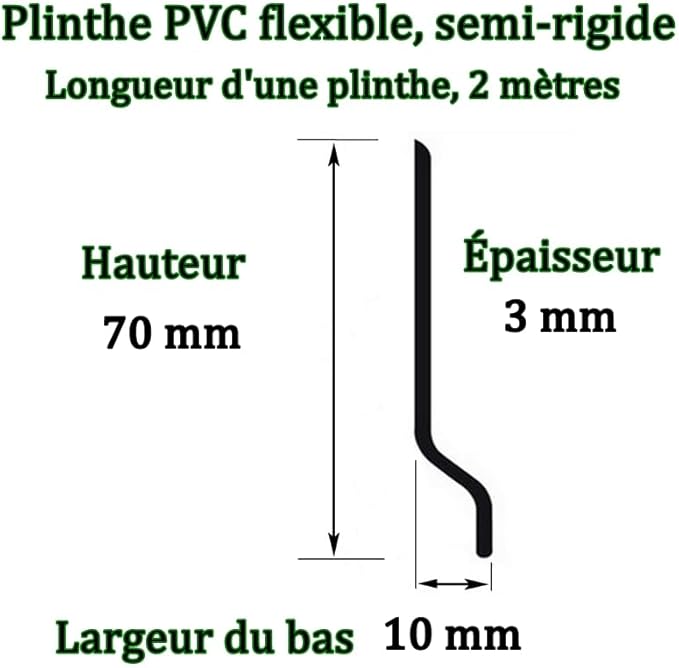 MadeInNature®, battiscopa flessibile in PVC di alta qualità, bianco, grigio chiaro, grigio scuro, nero, altezza 70 mm, lunghezza a scelta (14 ml, nero)