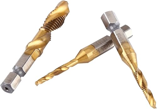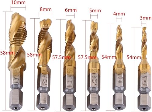 Punte Trapano Maschi Countersink Tap, HSS M3 M4 M5 M6 M8 M10 Tap Drill Bits Maschi per Filettare Titanio Rivestito Punte Maschiatura Perforazione Titanio Tap Trapano (6 Pezzi)