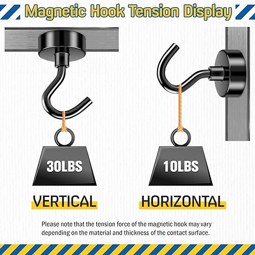 FINDMAG Confezione da 6 ganci magnetici, 13,6 kg + ganci magnetici al neodimio extra forti, ganci magnetici neri resistenti, magneti con gancio per appendere, asciugamani, casa, cucina, posto di